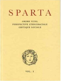 Sparta, nom de l’épouse d’un fils de Zeus qui renvoie bien sûr à la célèbre cité grecque, est le titre d’une publication sans périodicité fixe des éditions Aidôs. Sparta n’a aucun équivalent dans l’espace francophone et n’a eu que très peu de devancières dans la culture européenne depuis 1945: la revue romaine Ordine Nuovo, essentiellement évolienne; Nouvelle École (dans une certaine mesure); et Mars Ultor, dirigée en Allemagne par Pierre Krebs. Sparta est une publication ouvertement païenne, racialiste et identitaire, qui naît sous le triple parrainage augural du Rig-Veda, de Nietzsche et de Savitri Devi. Sparta, dès son premier volume, fait le pari de la qualité, tant sur le plan graphique, sobre et soigné, que sur celui du contenu. Grâce à Sparta, vos idées sont enfin défendues et affirmées avec rigueur et érudition ; vous y trouverez une écriture élégante, des références dûment vérifiées et complètes, des traductions (de l’allemand, de l’anglais, de l’italien) vraiment fiables. Sparta reflète le professionnalisme et la compétence de collaborateurs qualifiés, qui ont fait leurs preuves depuis longtemps : Jean Haudry, Philippe Baillet, Pierre Krebs, Jean Plantin, David Rouiller, auxquels viendront bientôt s’ajouter d’autres noms.