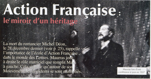 Le succès littéraire de certains fidèles de Maurras, tel le regretté Michel Déon, est une preuve éclatante de l’héritage culturel de l’AF. Réagissant à cette disparition, l’organisation se félicitait à bon droit « d’avoir toujours attiré à elle les plus grands esprits ».