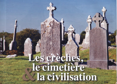 Il faut reconnaître que la loi de 1905, modifiée et complétée au fil des années, représente un équilibre entre les forces de destruction laïques et les forces de conservation chrétiennes. Les nouveaux Vandales, les écrabouilleurs de croix voient leurs ardeurs canalisées par la Loi. Encore faut-il souligner qu’une loi, cela s’amende et que ce que fait un texte de loi un autre peut le défaire. Aujourd’hui, que ce soit les antifas ou les laïcs, les forces de la Désagrégation spirituelle cherchent toutes les occasions favorables pour réaliser leur travail de dissolution culturelle. Le contexte consumériste, où seul compte la loi du Marché, les y encourage dans son nihilisme non avoué et profondément enfoui. Que les laïcs s’en prennent aujourd’hui au cimetière, c’est un détail sans doute, mais c’est aussi le signe d’une radicalisation inquiétante : rappelons que depuis Néandertal, l’homme (même quand il n’est pas tout à fait sapiens donc enterre ses morts, en leur ménageant une espérance. Quand la foi diminue, il reste l’espérance, indéracinable, comme en témoigne, au cimetière du Montparnasse, la tombe d’Eugène Ionesco, le dramaturge : « Je ne sais pas qui va m’accueillir J’espère Jésus-Christ ». C’est non seulement notre foi, mais c’est aussi notre espérance à laquelle s’en prennent les laïcs radicaux. Dans le discours où il expliquait pourquoi il établissait sa crèche, Robert Ménard, le maire de Béziers, confiait à ses administrés que certains aujourd’hui, restés absolument vides spirituellement, en sont à « jalouser l’espérance des autres » Et si c’était la clé ? Les raisons d’espérer s’additionnent et ne s excluent pas les unes les autres. Les religions, en général, se supportent. Le laïcisme, lui, est et se veut incompatible avec l’espérance. Il représente la raison du désespoir, que certains militants du néant voudraient imposer à tous les Français.
