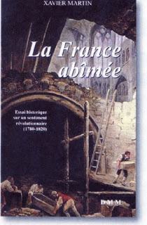 On connait moins un petit texte abondamment cité par Xavier Martin et dont le titre offre le programme de ce livre La France abimée : « Précis de l’influence des révolutions sur le caractère moral des Français ». Voila le projet de Xavier Martin : montrer comment « le caractère moral des Français » s’est ressenti de deux ans de terreurs et de massacres. Et pour cela citer des contemporains, la plupart du temps des témoins qui ont pris fait et cause pour la Convention, ou qui sympathisent avec le mouvement des Lumières et son aboutissement révolutionnaire. Parmi ces témoins, l’avis de Madame de Staël, célèbre pour la manière dont elle soutient les idées nouvelles, est particulièrement éloquent : « Toute morale d’amitié de société, de bonté est-elle finie ? » se demande la fille de Necker en 1800, et elle ajoute : « Après une longue révolution, les cœurs se sont singulièrement endurcis ». On peut se demander pourquoi elle se pose encore une telle question quelque cinq ans après la fin de la Terreur comme si les cœurs n’avaient pas encore cicatrisé. Xavier Martin répond, citant Stendhal