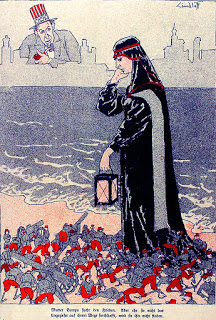 [Ci-contre : Dame Europe à l’instar de Diogène cherche avec sa lanterne la Paix. Dessin paru dans le journal satirique berlinois Kladderadatsch, 1923]