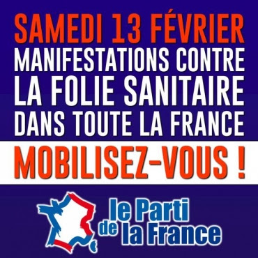 Samedi 13 février, le Parti de la France appelle ses militants et ses sympathisants à participer aux manifestations organisées à travers toute la France par Les Patriotes contre la dictature sanitaire.