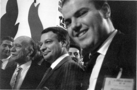 Giorgio Almirante, Jean-Pierre Stirbois, Roland Hélie au congrès du MSI à Sorrente en décembre 1987.