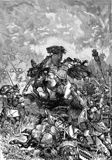 – Julien s’engage alors sur le front oriental dans une campagne qui mènera son armée jusqu’à la capitale des Perses. Mais accablé par la chaleur du climat les réticences ‘une partie de son armée, le manque de moyens logistiques amplifié par la politique de la terre brûlée des Perses, il doit battre en retraite et, le 26 juin 363, est mortellement blessé au combat.