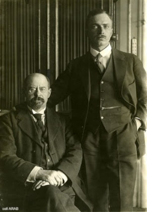 [De Man (debout) avec Émile Vandervelde avant la guerre]