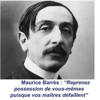 L’idée nationaliste est apparue en France, avec Maurice Barrès, dans un contexte très particulier, au lendemain de l’échec du boulangisme, celui qu’on appelait le général Revanche. De ce mouvement qui prétendait dépasser le clivage entre la droite et la gauche, largement soutenu par la duchesse d’Uzès et les survivants du bonapartisme, Barrès expliqua qu’il échoua faute d’une doctrine.