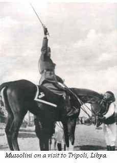 Lors de sa visite en Libye, entre le 12 et le 21 mars 1937, Mussolini reçut du chef arabe Youssouf Kerbish l’« épée de l’islam ». Le remise de cette épée ne fut pas un acte purement formel ou symbolique mais bel et bien un acte politique : « Les musulmans voient en toi », dira Kerbish au Duce, « un grand homme d’État qui guide notre destin d’une main ferme ».