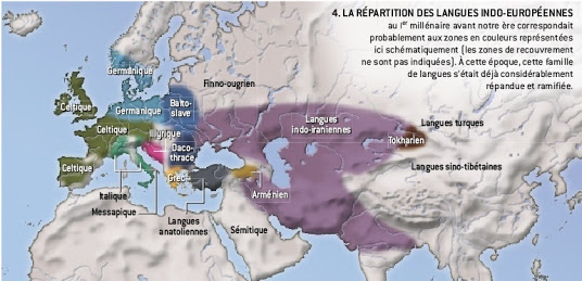 Au départ, l’existence des Indo-Européens n’est pas une donnée, mais une hypothèse au second degré. La première hypothèse est celle d’une langue indo-européenne : comme on l’a rappelé dans L’indo-européen, p. 123, cette hypothèse est la seule qui rende compte des concordances nombreuses, complexes et precises relevées dans la grammaire et le vocabulaire de la plupart des langues d’Europe et de plusiurs langues d’Asie. L’existence d’une langue implique celle d’une communauté linguistique. Mais communauté linguistique n’implique pas nécessairement peuple ou nation : le français est aujourd’hui la langue d’une communauté linguistique dite “francophone” qui, prise dans son ensemble, n’a en commun que la langue. Une situation analogue s’est constituée apres l’éclatement de l’Empire romain d’Occident. Mais peut-on avec quelque vraisemblance faire une telle supposition pour le IIIe millénaire avant notre ère ? Tel est en effet le terme ultime d’une communauté indo-européenne : au début du IIe millénaire apparaissent, déjà bien différenciées, les langues indo-européennes d’Anatolie ; or, rien n’indique l’existence d’un vaste empire au IIIe millénaire ou antérieurement. La communauté linguistique indo-européenne ne peut être celle d’un empire ou d’une confédération ; c’est nécessairement celle d’un peuple migrateur. Ce peuple, objectera-t-on, peut avoir été le rassemblement éphémère d’individus sans autre lien qu’une commune aventure, et, dans ce cas, il serait vain de rechercher ce qu’ils avaient en commun par ailleurs. Mais une telle supposition se heurte aujourd’hui à l’existence indiscutable d’une phraséologie poétique traditionnelle reflétant une idéologie commune. Et nous verrons que la communauté s’est étendue sur 2 périodes de la préhistoire, l’âge de la pierre et l’âge du cuivre. Ce qui nous conduit à la seconde hypothèse, celle d’un peuple indo-européen, dont il reste à déterminer la civilisation, la culture (4) et la nature, ainsi que la localisation dans l’espace et dans le temps.