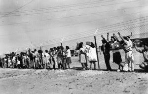 En février 1942, deux mois après l’attaque de Pearl Harbor, le président Roosevelt publie un décret ordonnant l’internement de toute personne d’origine japonaise, citoyenne ou non, résidant près des côtes du Pacifique. Un décret censé protéger les Etats-Unis contre le fantasme d’une potentielle «Cinquième colonne» soutenant l’ennemi nippon. La Californie est principalement concernée. Les camps furent établis dans le nord et à l’est de la Californie (Arizona, Arkansas, Colorado, Idaho, Utah et Wyoming) et la majorité des Américains d’ascendance japonaise y furent parqués. 120 313 japonais-américains seront déplacés : enfants, petits-enfants et arrière-petits-enfants de « yellow monkees ». Les camps fonctionnèrent de mars 1942 (ouverture de celui de Manzanar, qui compta jusqu’à 10 046 internés) à mars 1946 (date de fermeture du camp de Tule Lake, où l’on dénombra jusqu’à 18 789 internés). Il y eut des tentatives d’évasion ; beaucoup de victimes par manque de soins. Les camps étaient situés dans des zones hostiles, battues par des vents arides, où régnaient de très forts écarts de température.