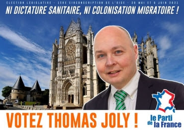 Thomas Joly, Président du Parti de la France, est le candidat de la Droite nationale à l’élection législative partielle dans la 1ère circonscription de l’Oise (30 mai et 6 juin 2021) provoquée suite au décès d’Olivier Dassaut.