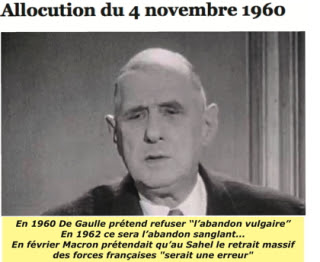 Abandon vulgaire. En novembre 1960 c’est la formule qu’utilise le fondateur de la cinquième république pour prétendre l’écarter. L’année suivante il entreprendra, pourtant, très officiellement de le mettre en œuvre ; il l’imposera, dans le sang du peuple européen d’Alger le 26 mars 1962, ouvrant la route au massacre des Français musulmans par les assassins du FLN.