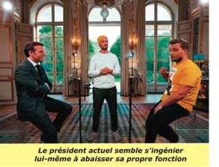 Or, ceci vaut particulièrement pour la France, dont la cinquième république, vieille de 63 ans, peine à se renouveler. Le tenant du titre semble ainsi s’ingénier lui-même à abaisser sa propre fonction. L’épisode des deux youtubeurs clownesques en a offert le 23 mai, avec Mac Fly et Carlito à égalité symbolique avec Jupiter, l’exemple le plus consternant, dernière en date de toute une série de fautes de goût inadmissibles.