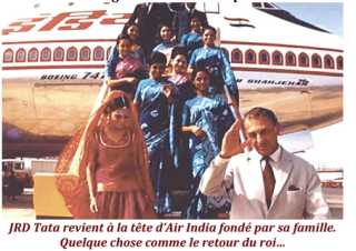 Le groupe Tata, mis en concurrence avec d’autres repreneurs, a investi dans l’opération 2,4 milliards de dollars. Quand JRD Tata revient à la tête d’Air India fondé par sa famille, cela a quelque chose comme le retour du roi dans la trilogie de JRR Tolkien…