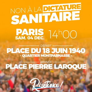 Samedi 4 décembre, on se montre encore plus nombreux ! Refus totalement du confinement et du couvre-feu ! Arrivée par millions de nouveaux résistants qui refusent la 3è dose ! Protection des enfants !