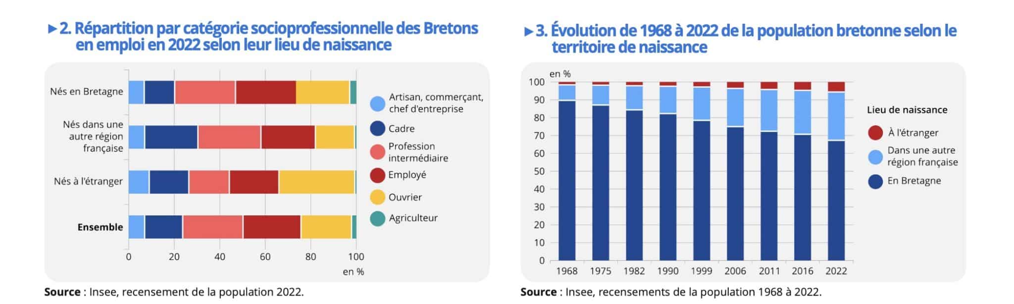Cette étude de l’Insee met en lumière une double transformation de la Bretagne administrative : D’une part, un phénomène migratoire qui voit arriver des cadres diplômés d’autres régions, notamment d’Île-de-France, ainsi qu’une population étrangère économiquement moins favorisée, concentrée dans le logement social et les emplois ouvriers.