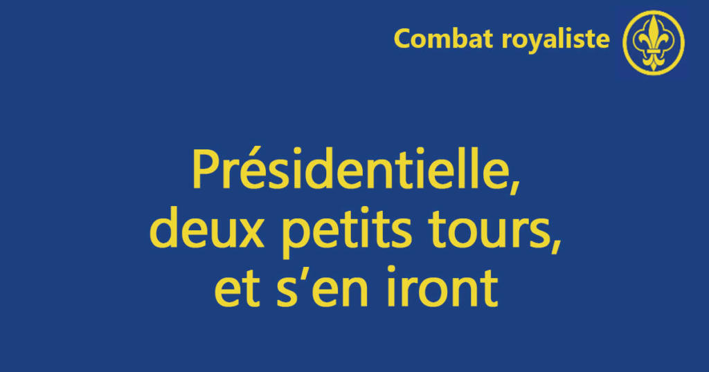 Si Philippe y parvient, et ne doutons pas que pour cela il bénéficiera du soutien de l’oligarchie financière, donc des médias et instituts de sondages, il se passera à la présidentielle 2027 ce qui s’est passé pour Laure Lavalette à la municipale 2026 de Toulon. Pour cela, il n’y aura même pas besoin de rejouer le théâtre antifasciste de plus en plus usé ; même si Édouard Philippe n’attend que cela. Non, il suffira aux médias de dénoncer des ingérences russes et de mettre en parallèle l’expérience d’un ancien Premier ministre avec celle d’une vedette de TikTok. Le jeu est fait d’avance ; deux petits tours et les marionnettes populistes s’en iront pour gratter quelques places de députés supplémentaires au sein du « pays légal ». Tiens, et pourquoi pas l’introduction d’une dose de proportionnelle ?